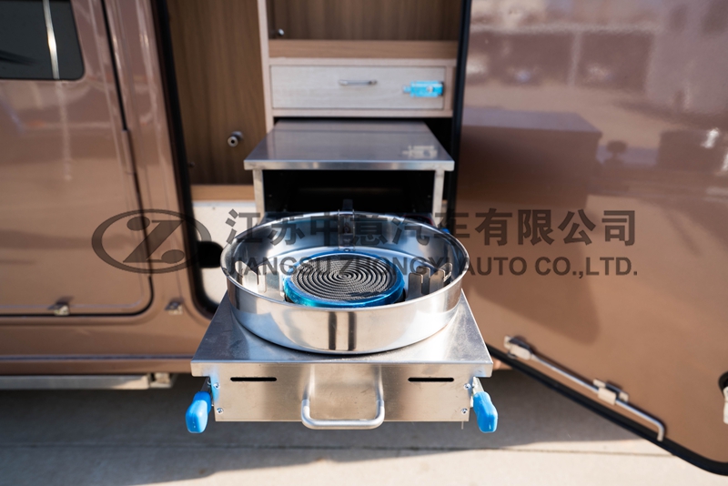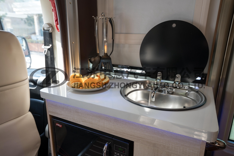 5630彩票网 厨房区域配备了不锈钢洗菜池和电磁炉,车载冰箱,微波炉等。